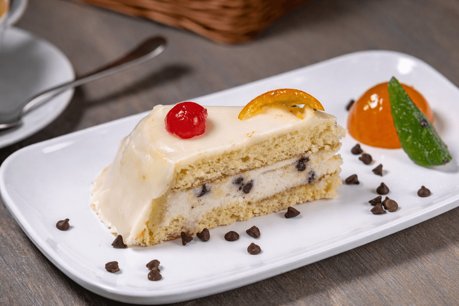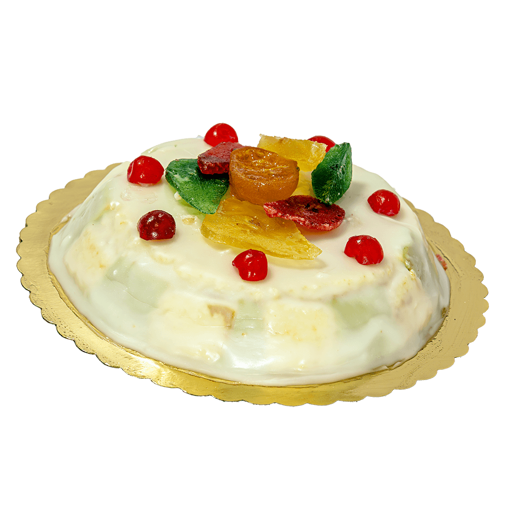 Layers of soft sponge, sweet ricotta cream, and rich almond paste, covered with a segar glasse and adorned with colorful candied fruits: a true taste of Sicily.