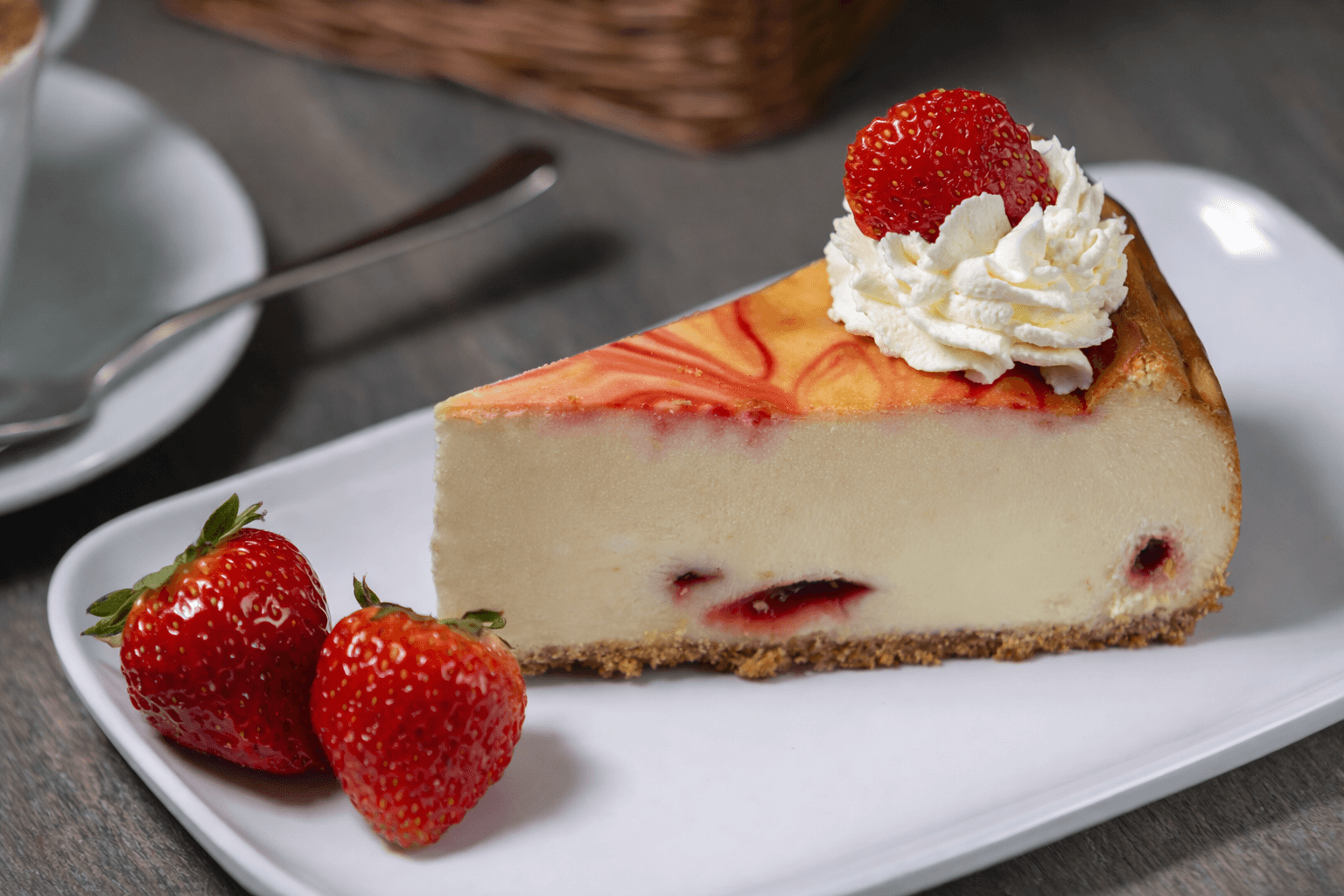 Sweet and fresh, our strawberry cheesecake combines creamy richness with the delicate, fruity flavor of seasonal strawberries. Creamy, smooth cheesecake contrasts with a layer of juicy strawberry topping made from ripe strawberries. The buttery graham crust adds gentle texture, making this flavor a timeless favorite.